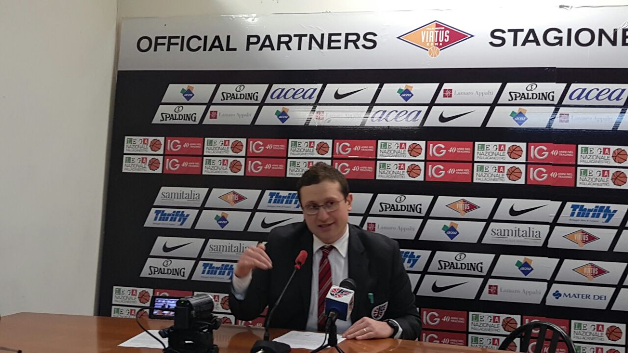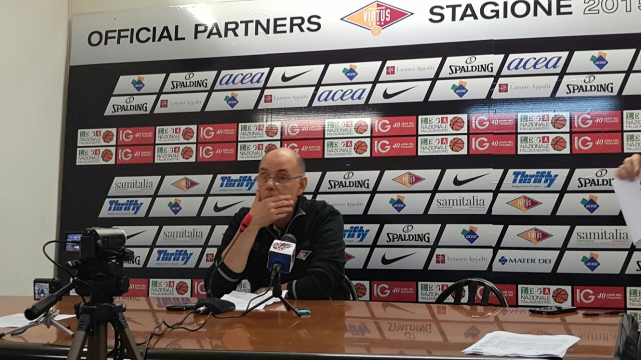 Ho chiesto alla squadra di fare uno sforzo particolare per ricordare al meglio Davide Ancilotto, per tutto ciò che rappresenta per la Virtus Roma. Abbiamo vissuto una settimana molto complicata e siamo arrivati senza fiato al traguardo. In difesa abbiamo svolto un’eccelsa prestazione, e siamo riusciti a vincere nonostante abbiamo segnato solo 4 punti nell’ultimo quarto. Dedico questa vittoria alla memoria di Ancilotto, ci tenevo particolarmente. Abbiamo voluto questa vittoria, mi complemento con la mia squadra, sono contento. Olasewere oggi è stato decisivo, con Callahan hanno colto 25 rimbalzi. Maresca non si è allenato tutta la settimana; per quanto riguarda Benetti, deve cercare di scuotersi ed aiutare sia se stesso che la squadra. Ha avuto varie occasioni, deve ritrovarsi.