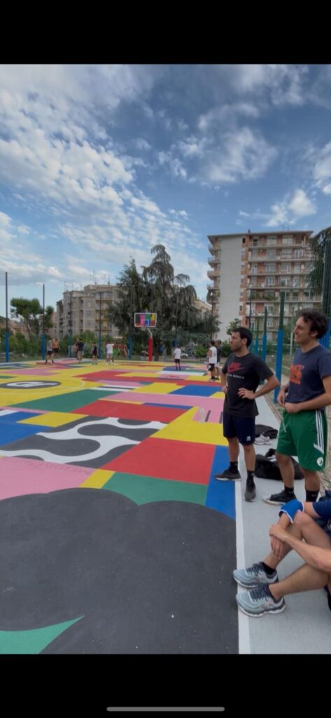 “Il tutto è nato nel 2022, in una vacanza in Toscana. Nel paese in cui stavamo avevano organizzato un torneo 3×3 a cui abbiamo provato ad iscriverci, ma le iscrizioni erano ormai chiuse. Tornati a Roma, abbiamo deciso di creare il nostro torneo, con i ragazzi con cui giocavamo ogni giorno, nel campetto in cui passavamo tutte le nostre estati. E’ così che cominciamo a fare i primi tornei (non ancora ‘eventi’) al Parco della Regione Lazio in Via Rosa Raimondi Garibaldi. Dopo qualche torneo, con l’apertura del campo in Via Malfante, ci siamo spostati in questo nuovo playground e abbiamo ‘alzato l’asticella’. Sono arrivate le prime collaborazioni con ristoranti e realtà limitrofe al campo, fino all’accordo di partnership con Decathlon. Ogni evento, con i suoi sponsor, le sue novità, i video e le foto, sono presenti sul nostro sito! Sabato 14 Giugno, poi, siamo stati invitati all’inaugurazione del nuovo campo da basket