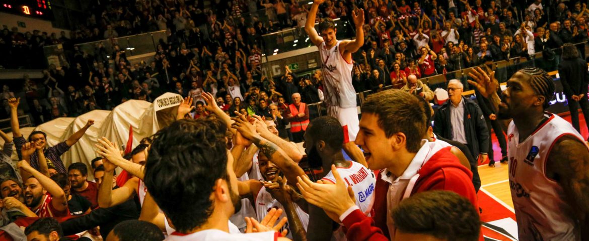 REGGIO EMILIA VOLA – Amedeo Della Valle stringe i denti e supera il problema alla schiena, la Reggiana segue l’esempio del suo leader e sforna una prestazione sensazionale per superare lo Zenit San Pietroburgo e raggiungere le semifinali di Eurocup, battendo anche un arbitraggio che ha fatto infuriare i tifosi di casa. Reggio Emilia riesce a reagire all’ottima partenza dei russi, che con Voronov volano sul +7 (6-13) dopo metà primo quarto. White e Della Valle disegnano i canestri della primissima rimonta di serata, alla prima sirena è 20-22. Reynolds guida i suoi in avvio di secondo quarto, con Cervi e Della Valle la Grissin Bon assapora la doppia cifra di vantaggio. Ma la gioia dura poco, due bombe di Voronov e Simonovic rimettono tutto in discussione e all’intervallo lungo è 45-40. Un 7-0 di parziale per lo Zenit sembra tramortire Reggio, la schiena tormenta Della Valle che chiede tregua in panchina e San Pietroburgo tocca le nove lunghezze di vantaggio. Nel momento più delicato è Wright a caricarsi sulle spalle l’attacco reggiano, a 10′ dalla fine il tabellone dice 70-71. L’onda lunga proegue, Wright trova altri tre canestri e la Grissin Bon torna avanti di 6 punti. San Pietroburgo rientra ancora, Della Valle e Kuric prendono la scena e iniziano un clamoroso botta e risposta. Con il cronometro agli sgoccioli è la difesa a regalare a Reggio Emilia un successo incredibile (105-99): in semifinale ostacolo Lokomotiv Kuban, fin qui mai ko in Eurocup.