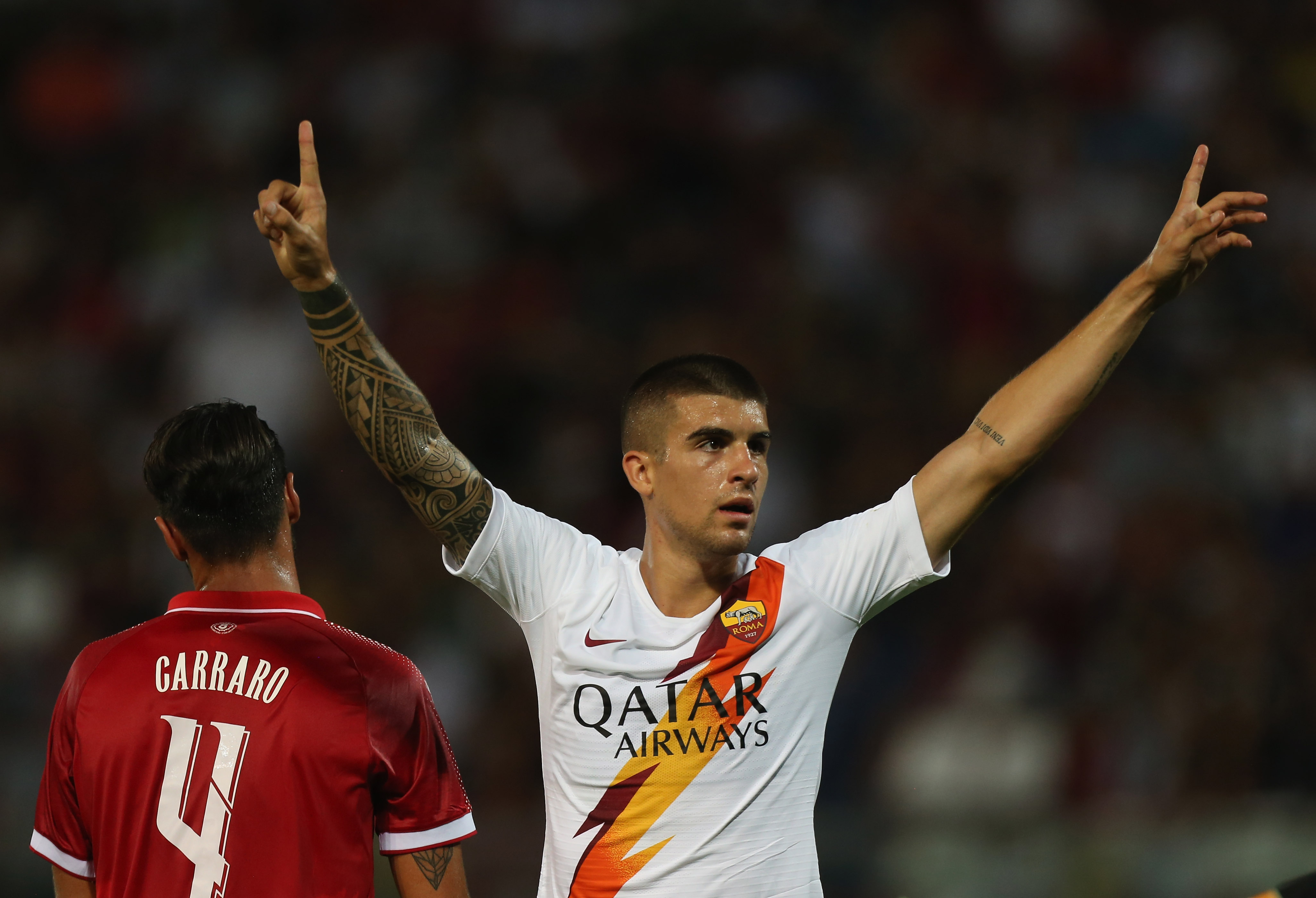 PERUGIA, ITALY - JULY 31: Gianluca Mancini of AS Roma celebrates after scoring the team's second goal during the pre-season friendly match between AC Perugia and AS Roma at Stadio Renato Curi on July 31, 2019 in Perugia, Italy. (Photo by Paolo Bruno/Getty Images)