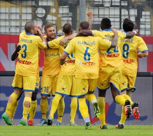 Nella ripresa Pazzini entra in campo al posto di Gomez, Mandorlini prova il tutto per tutto, ma al 3′ Dionisi servito in area da Sammarco mette a sedere Gollini e fa tre per il Frosinone. Al «Matusa» è festa grande, mentre i tifosi del Verona tolgono gli striscioni per protesta. La gara è ormai incanalata in un binario ben preciso, ma al 20′ si affaccia il Verona in avanti e la conclusione di Pazzini è centrale: è il preludio alla sofferenza. Al 24′ gol del Verona, Viviani su punizione dal limite beffa Leali e prova a riaprire il match. Stellone si copre, inserendo Frara al posto di Soddimo al 28′. Il Verona però la riapre davvero al 30′ con Moras, che gira di testa un corner di Viviani e batte un Leali non esente da colpe. Ora il clima si fa gelido ed il Frosinone sparisce. Al 36′ occasione Frosinone, ma Dionisi è contrato da Bianchetti, al 38′ Hallfredsson fa correre un brivido sulla schiena dello stadio intero sfiorando la traversa, dopo dieci minuti stessi brividi, ma anche stesso risultato per un tiro di Pisano. Alla fine Rizzoli decreta lo stop alle ostilità, tre punti giallazzurri, ma quanta sofferenza.
