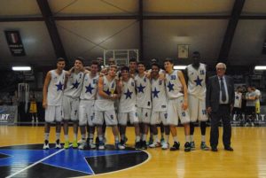 Nel match tra le due squadre imbattute dopo i gironi di qualificazione, gli ospiti tengono botta bene per i primi due quarti sulla scia delle triple di Loi eMoretti, poi nella ripresa la Stella alza i giri del motore e vola presto sopra il ventello di vantaggio, sfruttando le sgroppate incontenibili dei “piccoletti” Trapani, Ianelli e Provenzani e le vincenti lotte sottocanestro di Bayehe, che termina la gara da top scorer stellino con 14 punti.