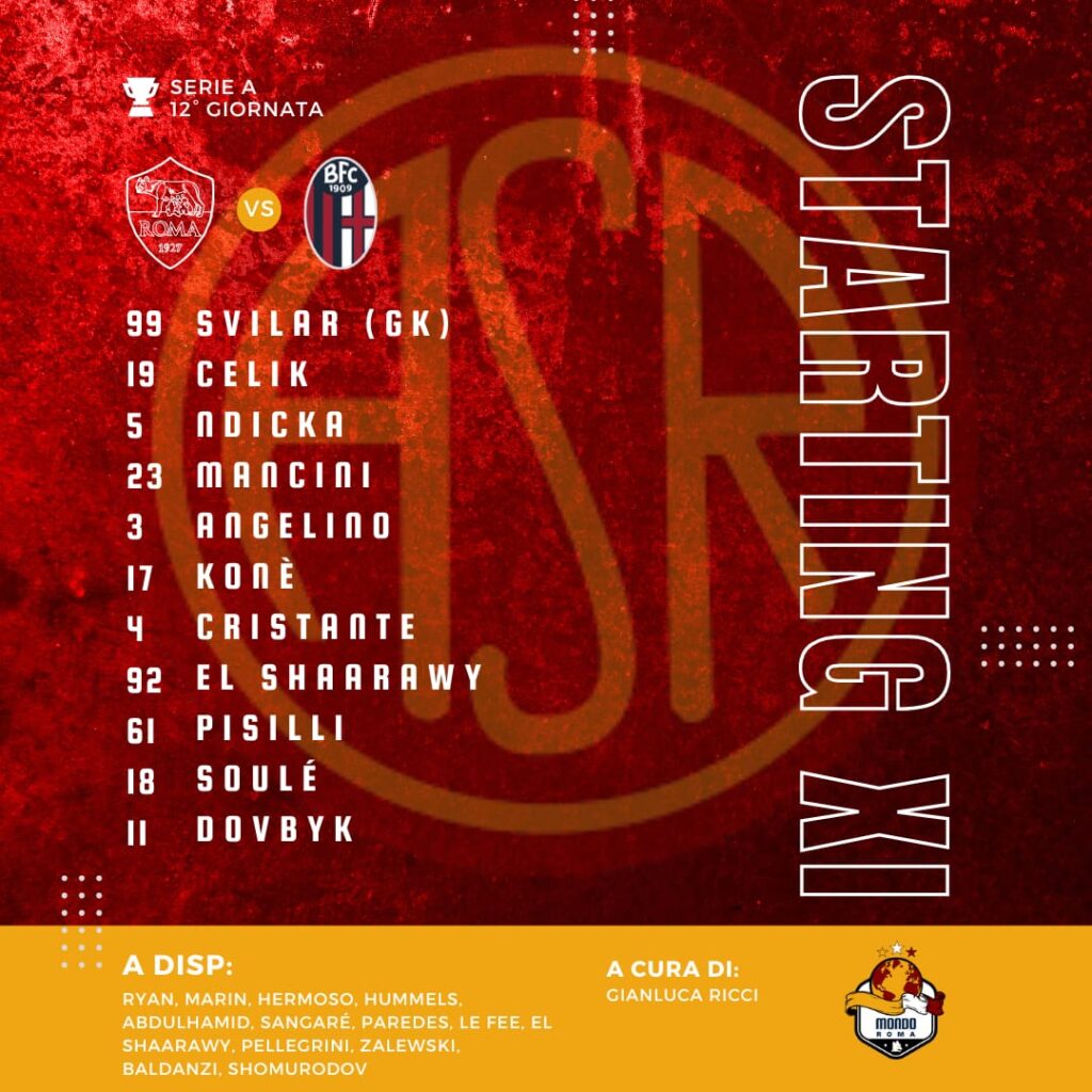 ROMA (3-4-2-1): Svilar; Mancini, Ndicka, Angelino; Celik, Cristante, Koné, El Shaarawy; Soulé, Pisilli; Dovbyk. Allenatore: Ivan Juric. CONFERMATA