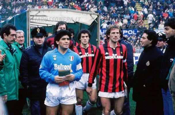 A maggio il Milan vincerà il suo undicesimo scudetto (il primo dopo 9 anni) proprio a danno del Napoli per 45-42 dopo una rimonta delle ultime 5 giornate che si evidenzierà con 3 vittorie e 2 pari rossoneri al confronto con 4 sconfitte e un pareggio dei campani, che cederanno la vetta proprio dopo il leggendario 2-3 nello scontro diretto del 1° maggio 1988: si parlerà di un ammutinamento nello spogliatoio azzurro contro Bianchi da parte di Garella, Ferrario, Bagni e Giordano oltre a presunte pressioni subite dal Napoli da parte della Camorra per eventuali perdite alle scommesse clandestine derivanti da un eventuale bis-tricolore degli uomini di Maradona, che vincerà la classifica cannonieri con 15 timbri in 28 presenze (il secondo in tale graduatoria sarà Careca, con 13 gol in 26 apparizioni e una media di un gol ogni 2 giornate, al contrario dell’argentino…decisamente il miglior attacco del torneo, coinciso nell’unica stagione senza titoli del momento migliore nella storia azzurra), senza scordare gli ingenti affari in comune fra Berlusconi e Ferlaino dal punto di vista edilizio (il primo era a capo della holding “Fininvest” con diramazioni edili ed editoriali mentre il secondo gestiva un gruppo forte dal punto di vista finanziario in tutto il sud del paese). Quanto alla Coppa Italia, i milanisti usciranno ai rigori proprio negli ottavi per mano dell’Ascoli malgrado avessero rimontato nelle Marche lo 0-1 subito in casa mentre il Napoli si arrenderà al Torino finalista (sconfitto dalla Sampdoria ai supplementari) nei quarti (1-1 in Piemonte e rimonta per 2-3, da 2-1, subita in Campania nell’ultimo quarto d’ora). Milan-Napoli, dopo 10 anni é tornata a contare come uno scontro dello scudetto…auguriamoci che il campo e la gara siano all’altezza della propria fama!!