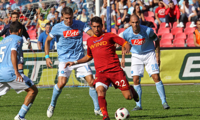 Proprio Napoli sembra essere la città che, all’inizio del 2° decennio del nuovo millennio, appare rinata più di tutte sotto ogni aspetto…si sente una strana aria che circola ovunque come negli anni ’80, quando il capoluogo campano riuscì a risollevarsi dopo tempi terribili ritrovando la spensieratezza anche a livello calcistico, prima che politico ed economico: per la 6° giornata di campionato, assieme all’eterna Inter-Juventus nel posticipo domenicale, troviamo una gara che sa molto di Europa come Fiorentina-Palermo e, soprattutto, una gran parte della ribalta è occupata da Napoli-Roma…stiamo parlando di una sfida che fece la storia del calcio italiano proprio negli anni ’80 e che si è tornata a giocare in massima lega da 3 annate (dopo il doppio trionfo romano negli ottavi di coppa nazionale 2005/06: 0-3 fuori e 2-1 in casa per un computo totale di 5-1) con un bilancio nettamente a favore dei giallorossi: 3 vittorie (2 in Campania e l’ultima nel Lazio) sommate a 3 pareggi (stesso ritmo: le prime 2 a Napoli e l’ultima a Roma) a fronte di 14 reti segnate contro le 7 incassate. Sulla carta non ci sarebbe partita neanche stavolta, anche se il Napoli è a 8 punti mentre la Roma sta a 5: in settimana i partenopei hanno pareggiato 3-3 al 7° minuto di recupero nella tana della Steaua Bucarest dopo essere stati sotto 3-0 al 16° (3-2 all’intervallo) nella 2° giornata dei gironi di Europa League andati in scena il giovedì sera mentre i capitolini hanno conquistato, il martedì antecedente, la loro 1° vittoria stagionale nei gruppi di Champions League battendo il Cluj 2-1 (sfida assai complicata e in cui rumeni hanno colpito 1 palo e 1 traversa non demeritando affatto)…la situazione in classifica ci parla di un team azzurro che a Fuorigrotta non ha ancora vinto (1 pari per 2-2 con il Bari e 1 batosta di 1-3 in rimonta con il Chievo) anche se in trasferta ha dato il meglio di sè (1-1 a Firenze, 1-2 a Genova con la Sampdoria, 1-4 a Cesena: 3 risultati ribaltati fruttanti il 99% del bottino attuale); i romanisti, da parte loro, hanno avuto un avvio da incubo malgrado un calendario assai favorevole: 0-0 con il Cesena (neopromosso alla 1° gara di massima lega in seguito alla retrocessione del 1990/91) e 2-2 con il Bologna nella capitale, 5-1 a Cagliari e 2-1 a Brescia (altra gara con una neopromossa…con una direzione di gara da parte dell’arbitro Russo, della sezione di Nola, a dir poco indecente e che sta ancora costando molto dal punto di vista delle defezioni agli ospiti) pure se con la consolazione di aver battuto 1-0 l’Inter fra le mura amiche 7 giorni addietro.