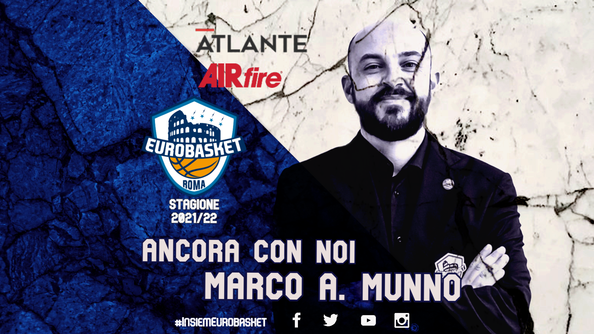 Munno, impegnato anche nella collaborazione con diverse realtà del panorama comunicativo cestistico, è felice della prosecuzione della sua avventura con la squadra di Via dell’Arcadia: “Ringrazio la famiglia Buonamici e il GM Scatarzi per la possibilità datami nuovamente di confrontarmi con un ambiente giovane, con una grande coesione interna e molto stimolante in tutte le sue componenti, particolarmente attento a questo settore conoscendone le grandi potenzialità.”