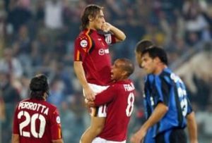 Per domenica 3/10/2004 il big match è Roma-Inter, gara dal passato glorioso pure se l’avvio di stagione è stato disastroso per entrambe (4 punti per i giallorossi e 6 per i nerazzurri) tanto è vero che la Roma ha già cambiato Prandelli nel pre-campionato sostituendolo prima con Voller chiamando poi Del Neri e Mancini è pesantemente in discussione, Sensi e Facchetti presenziano in tribuna nonostante il presidente capitolino abbia altro a cui pensare sul versante finanziario, Bertini dirige comunicando da subito di voler parlare solo con Totti e Zanetti…eppure è strano lo scenario di un Olimpico che non registra il sold-out come al solito nonostante i numerosi nomi di rango: Panucci, Mexes, De Rossi, Mancini, Montella, Cassano da un lato con Cordoba, Burdisso, Veron, Stankovic, Recoba, Adriano.