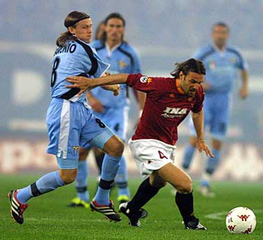 La zona dove avvengono i primi scontri con i primi ammoniti è, ovviamente, quella nevralgica pure se a farne le spese con il giallo sono solo Samuel, Zebina, Totti e Pancaro, Crespo nella I° frazione…le occasioni sono poche oltre che tutte fuori bersaglio pure se è la Roma a rendersi maggiormente pericolosa facendo affidamento sul proprio tandem Delvecchio-Batistuta ma l’ex di turno Peruzzi fa ottima guardia portando all’intervallo il tabellino sullo 0-0 come all’andata.