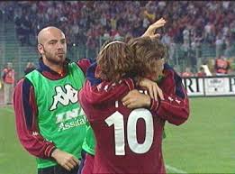 In tribuna troviamo ancora Sensi e Galliani come massime cariche dirigenziali, l’ex Capello sulla panchina di casa e Tassotti con Maldini senior su quella ospite, i capitani corrispondono a Totti e Maldini junior, la sfilata di talenti stranieri è lunga (Samuel, Zago, Cafu’, Candela, Batistuta e Kaladze, Serginho, Guglielminpietro, Shevchenko) più di quella dei talenti nostrani (Tommasi, Delvecchio, Coco) con Cesari ad arbitrare e moduli perfettamente esaustivi delle filosofie tecniche in questione…3-4-1-2 opposto a 4-4-2.