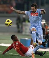 al confronto di un Napoli, allenato da Walter Mazzarri dall’autunno del 2009 (ironia della sorte, arrivò proprio grazie a Roma-Napoli 2-1 del 4/10), che ripiega sul suo 3-4-2-1 (3-5-1-1 in corso d’opera) rinunciando allo stopper Grava e al centravanti Lucarelli, entrambi infortunati, oltre ai difensori Ruiz, Vitale, Maiello, al mediano Blasi e al bomber Dumitru (tutti lasciati fuori per scelta tecnica), vista la disponibilità totale dei migliori pur contando una rosa risicata e la gara da giocare a Fuorigrotta con il Villareal per l’andata dei sedicesimi di finale del prossimo giovedì