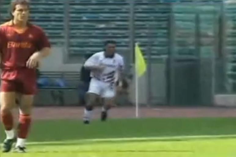 Da subito si capisce che sarà una gara molto calda e non solo meteorologicamente: i timori reverenziali vengono lasciati nello spogliatoio già al 16°, quando Aguilera anticipa l’ex di turno Benedetti correggendo con una girata un tiraccio di Sordo per lo 0-1; la Roma non ci sta e si getta all’assalto riuscendo a ribaltare tutto con un siluro di destro dai 20 metri da parte di Carnevale al 25° e il sorpasso di Muzzi con il sinistro al 29°: siamo appena alla mezz’ora quando il tabellino segna già 2-1…poco dopo Piacentini e Fusi, Fortunato rimediano anche l’ammonizione dimostrando ancor di più il bollore del pomeriggio a tutti i livelli ma le emozioni non sono ancora finite per la I° frazione: proprio sulla punizione concessa per infrazione di Piacentini, Aguilera (che da pochi giorni è divenuto padre e dedicherà la prestazione alla sua famiglia con particolare gioia) si fa toccare la sfera da Scifo esplodendo un destro chirurgico a giro dietro la barriera che si infila sotto la convergenza sinistra dei pali denotando il 2-2 con cui si va al riposo proprio quando l’orologio segnala il 45°.