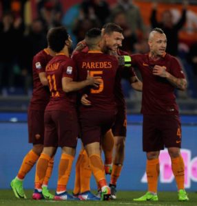 ROMA (3-4-2-1): Szczesny, Rudiger, Fazio, Juan Jesus; Peres, Grenier (dal 19’st. Dzeko), Paredes, Mario Rui; El Sharaawy (dal 27’st. Strootman), Nainggolan; Salah (dal 36’st. De Rossi). All. Spalletti