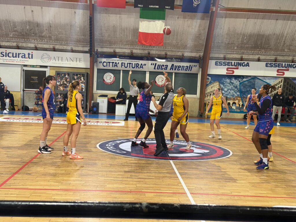 Uscita sconfitta dal recupero esterno di martedì scorso ad Esquilino, la Confartigianato San Raffaele Basket si prende un sonoro riscatto casalingo, imponendo lo stop alla capolista CB Frascati. Oltre ad interromperne l’imbattibilità dopo nove turni senza sconfitte. Score finale del match clou della terza di ritorno, disputato davanti ad un PalaAvenali, 92-90 al termine di una sfida equilibrata, tesa e incerta fino in coda. A premiare Grattarola e compagne è stata soprattutto la capacità di far gruppo, rimanendo sul pezzo anche nei frangenti più caldi della sfida. Il quintetto di coach Manuel Monetti al contrario, paga a caro prezzo la serata no della sua stella di prima grandezza: il centro cubano Melissa Despaigne Bongo. Appena 11 i punti realizzati dalla 44 rossonera, carica di falli già dopo il primo quarto. Non è bastata alle ospiti la prestazione di spessore dell’altra lunga Eveline Toyounon, top scorer della sfida con 35 punti. L’impresa del San Raffaele porta in particolare la firma di una Chicca Pompei devastante: 28 i punti a tabellino della play ex Umbertide, con sette triple messe a segno e una regia impeccbile. Determinante anche il contributo di Ludovica De Marchi con 19 pts, season best della guardia gialloblu. Al via i quintetti sono questi: Cupellaro, Grattarola, De Marchi, Russo, Prosperi e Fletcher per Sara Ciccalotti; Mondano, Al. Candidi, Barbieri, Despaigne Bongo e Toyounon per Manuel Monetti. La prima frazione è segnata dal più totale equilibrio e le ospiti la chiudono avanti di un possesso (24-22). Stesso leitmotiv anche nel secondo semi-tempo, con la Confartigianato che va all’intervallo sul +3 (48-45) grazie ad una tripla da circa otto metri di De Marchi nell’ultima azione. Al rientro sul parquet le lunghe del CBF sono condizionate dai falli, tuttavia Mondano&C. non si perdono d’animo presentandosi all’inizio dell’ultimo periodo sul +’1 (73-72). Qui sono le locali a salire in cattedra, mantenendo i nervi saldi in un’autentica battaglia, chiudendola vittoriosamente sul 92-90. Gran bel regalo delle gialloblu per coach Ciccalotti nel giorno del suo compleanno. In classifica Frascati resta fermo a 18 punti, il SRB raggiunge quota 16, sopravanzando di due lunghezze Esquilino, superato in trasferta dalla Smit (63-62). Sabato prossimo la Confartigianato proverà a ripetersi a Rieti contro la NPC Women quarta in classifica, mentre Frascati dovrebbe aver gioco facile in casa con l’Atletico San Lorenzo.