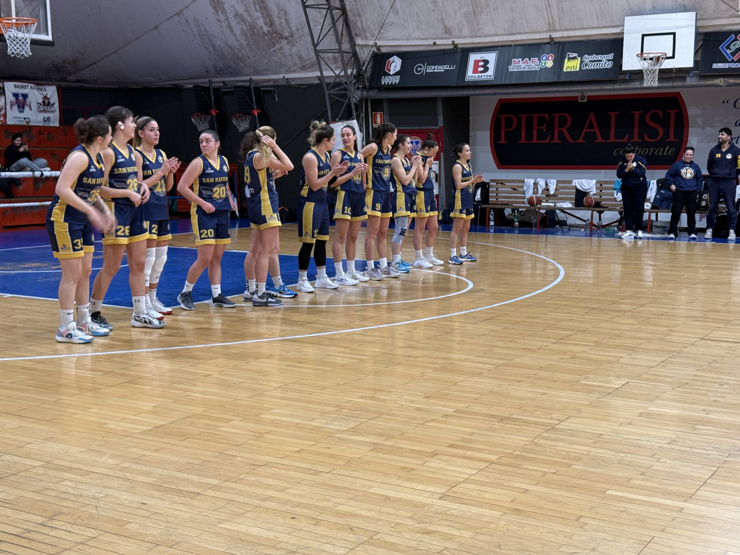 Tredicesima di serie B femminile senza sorprese per la Sinercom San Raffaele Basket, corsara sul parquet della Virtus Bk Aprilia nell’ultimo atto del girone d’andata e dell’anno. Punteggio finale 67-54, al termine di un match che ha visto le ospiti sovrastare il team locale sul piano della forza del collettivo e dell’intensità difensiva. Alle gialloblu di coach Sara Ciccalotti va dato in particolare il merito di aver tagliato i rifornimenti alla temuta Prosperi, una delle due ex di turno e cecchino del quintetto allenato da Fabiano Mocci. Sul piano individuale, in evidenza su tutte la lunga Barbieri (15 punti), dominante sotto i tabelloni. Così come determinanti si sono rivelate le varie Ciaccioni, Russo e Introna. Unica invece a distinguersi nella mediocrità generale tra le sconfitte, l’altra ex di giornata Cupellaro (top scorer della gara a quota 23). La Sinercom inizia subito forte e trascorsi 6’ del primo quarto è già avanti di dieci lunghezze (16-6), andando a chiudere il parziale sul +9 (22-13). Nella seconda frazione Pompei&C. allungano e al 12’ sono a +15 (29-15), mentre all’intervallo vanno su un (apparentemente) rassicurante 36-26. Al rientro in campo dopo il riposo, anziché produrre l’allungo decisivo, il SRB subisce un break di 9-3 che sembrerebbe riavvicinare Aprilia (36-39 al 24’). Ciccalotti chiama però time out e le romane ritrovano la lucidità e determinazione indispensabili per portarsi a +8 al 30’ (47-39), così da gestire il proprio vantaggio sino alla sirena di fine partita. In striscia da tre giornate, la Sinercom San Raffaele Basket raggiunge quota 22 punti (11 vìinte, 2 perse) e consolida il proprio secondo posto in classifica ex aequo con il Basket Roma, in attesa della sfida di pura accademia di domani sera del CB Frascati con la Stella Azzurra. Ora il campionato si fermerà per le festività natalizie e riprenderà nel primo weekend di gennaio con la prima giornata di ritorno. Ad attendere Capitan Grattarola e compagne, sabato 4 gennaio ’25 alle ore 20.30, il confronto esterno con la Virtus Bk Albano-Pavona.