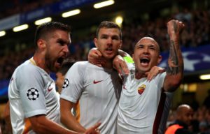 ROMA – Con il cuore e con la personalità. Con la forza offensiva ma anche con inevitabili fragilità difensive. La Roma sfiora l’impresa ed esce dallo Stamford Bridge con un folle ma preziosissimo 3-3, un pareggio importante in chiave qualificazione frutto di una grande prestazione. In svantaggio di due gol, i giallorossi hanno dimostrato di crederci sempre grazie ad un atteggiamento sempre intraprendente, con la ferocia che auspicava Di Francesco alla vigilia. Una convinzione “da grande” che ha permesso ai giallorossi di rimontare i due gol inglesi, prima accorciando con Kolarov e poi portandosi addirittura in vantaggio con una doppietta micidiale di un Dzeko in grande spolvero. La rete finale dei Blues ha ricordato le difficoltà difensive della Roma che, orfana di Manolas, non ha trovato la giusta stabilità dietro. Ma il 3-3 finale è un grande risultato e invita all’ottimismo: può sorridere Di Francesco che esce dal fortino londinese con un punto d’oro che tiene a distanza l’Atletico Madrid, fermato sullo 0-0 dal Qarabag.
