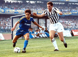 La sfida Verona-Juventus, in una cornice di ben 45.000 persone (9.000 juventini circa), vede i capolisti pronti a sfidare fra 3 giorni i finlandesi dell’Haka Valkeakoski per il ritorno dei quarti di Coppa delle Coppe dopo aver vinto 1-0 fuori casa all’andata (sarà lo stesso risultato anche stavolta…in semifinale li aspetta il Manchester United) intanto i veneti erano usciti nei sedicesimi di Coppa UEFA dinanzi allo Sturm Graz con un doppio pari (2-2 in Italia e 0-0 in Austria) in seguito all’aver fatto fuori la Stella Rossa (doppia gioia: 1-0 a Verona e 3-2 a Belgrado) mentre l’avventura in Coppa Italia dei bianconeri si era conclusa a febbraio per mano del Bari, vedendo la vittoria dei pugliesi a Torino per 1-2 con gol al 90′ e il 2-2 al ritorno con pareggio di casa sempre in zona recupero per giunta su rigore: decisamente una doppia beffa sapendo che poi il biancorossi saranno fatti fuori proprio dal Verona in semifinale (2-1 fuori e 3-1 sul terreno amico per un 5-2 totale) essendo riusciti a piegare sul 2-2 i piemontesi pure nei gironi estivi mentre i gialloblù perderanno la finale (l’ultima giocata ad oggi ma che fu, all’epoca, la seconda consecutiva dopo quella persa proprio 3-2 ai supplementari facendosi rimontare dalla Juve l’anno passato ricordando pure quella persa nel 1977 a Roma contro il Napoli) contro la Roma a giugno inoltrato (1-1 in casa e sconfitta 1-0 fuori proprio in coincidenza con l’europeo vinto dai padroni di casa) dopo aver estromesso Avellino (sconfitta 1-0 in Campania e ribaltone 3-0 ai supplementari al nord) e Udinese (sconfitta 2-1 in Friuli e 1-0 al ritorno). Adesso, però, le chiacchiere stanno a zero ed entrambe vogliono proseguire il loro cammino per i rispettivi obiettivi: la Juventus viene da 15 gare imbattibilità di cui 9 vittorie e 6 pari (dopo l’1-2 in casa con la Samp il 30 ottobre sono arrivate proprio il 3-1 al Verona, 2-0 a Catania, 3-3 a Firenze, 2-2 con la Roma e a Udine, 2-0 all’Inter, 2-1 ad Avellino, 4-2 al Genoa, 0-0 ad Ascoli, 3-1 al Pisa, 1-1 a Napoli, 2-1 con la Lazio, 3-0 in casa Milan, le rimonte per 2-1 col Torino e 1-1 sul campo della Sampdoria) mentre il Verona é ancora imbattuto in casa (4-2 alla Lazio, 2-0 al Pisa, 3-1 ad Ascoli e Fiorentina, 1-1 col Napoli, 3-0 all’Avellino, 0-0 col Genoa, 1-0 alla Roma, 1-1 col Milan, 2-1 all’Udinese, 3-1 al Catania) ma ha perso le ultime 2 trasferte a Firenze (2-0) ed Ascoli (2-1) restando in lista per le coppe europee avendo anche lo stimolo di riuscire ad aprire e chiudere la striscia positiva degli avversari. Sulle tribune si trovano sia il patron di casa Celestino Guidotti che gli azionisti di maggioranza ospiti Gianni e Umberto Agnelli con presidente Giampiero Boniperti, tutti molto curiosi di vedere come l’arbitro salernitana D’Elia condurrà la sfida ma vedendo pure che non ci sono sorprese: i padroni di casa si schierano 4-4-2 a uomo con il tecnico Osvaldo Bagnoli che deve rinunciare solo al centrocampista infortunato Sacchetti oltre all’esclusione del futuro allenatore Guidolin per scleta tecnica vista la carenza di posti in lista…Giovanni Trapattoni, invece, ha tutta la rosa a disposizione se si escludono le ultime riserve, ovvero i centrocampisti Tavola e Koetting, ma sceglie di non usare il 4-4-2 in favore del 4-5-1 in cui Tardelli stringe in mezzo a fare il mediano con Bonini liberando totalmente Platini e Boniek sta all’ala sinistra con Vignola a destra (nella concezione attuale, contando pure Rossi solo in avanti, questo potrebbe essere visto come un 4-3-3 “mascherato”). Ancora molti sono nel giro della nazionale delusa: Cabrini, capitan Scirea, Gentile, Tardelli, Rossi intanto che, alle olimpiadi di Los Angeles che chiuderemo da quarti perdendo la semifinale col Brasile e la finale di concolazione per mano della Jugoslavia sempre 1-2, ci saranno capitan Tricella, Fanna, Iorio e Vignola…sul fronte delle stelle internazionali altri resteranno a bocca asciutta come lo scozzese Jordan, i polacchi Zmuda e Boniek (tutti che guarderanno gli europei da casa malgrado il britannico avesse fatto bene ai mondiali e i biancorossi fossero giunti terzi in Spagna dietro a noi e alla Germania Ovest ma proprio davanti ai francesi) vedendo invece Platini che trascinerà i suoi al primo oro della loro storia arrivando anche ad essere capocannonierie con 9 reti (ad ora record con 2 triplette nelle ultime 2 sfide del raggruppamento) in un cammino esaltante in cui elimineranno 1-0 la Danimarca, 5-0 il Belgio, 3-2 la Jugoslavia, 3-2 ai supplementari il Portogallo, 2-0 la Spagna all’ultimo atto.